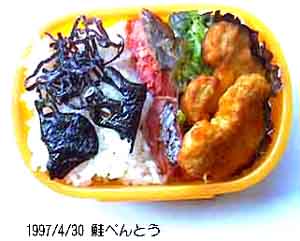 紅鮭の塩焼き、チキンナゲット、キャベツ炒め、ごはん、塩昆布、のり。