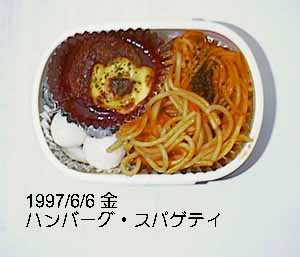 チーズハンバーグ、ミートスパゲッティ、ウズラのゆで卵