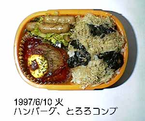 チーズハンバーグ、キャベツウィンナー、ごはん、とろろ昆布、のり。