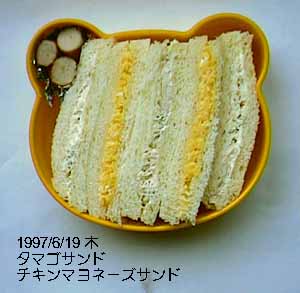 たまごサンド、チキンマヨネースサンド、ウィンナー。