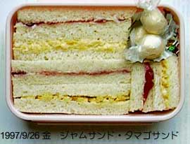 イチゴジャムサンド、たまごサンド、チーズ。