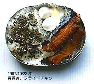チキチキぼーん、ウズラの卵、ごはん、ひじきふりかけ。