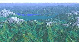 戦場ヶ原を中心とする半径15qの上空4千m(標高)を時計回りに一周したときに見える奥日光の地形シミュレーションです。