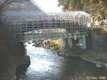 これから、屋根材を取り付け、さらに壁と床を取り付けて、神橋は隠れてしまいます。