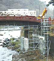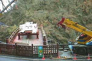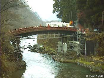 神橋をはさんで両側に巨大なクレーン車がとまっていて、そのクレーン車が何かをするようなのですが、意味不明です。