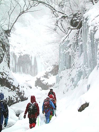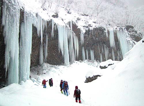 ![]() 1月27日、氷壁の美しさで登山家に人気がある雲龍瀑(うんりゅうばく)に初めて行ってきました。 今回は、毎年恒例の山岳遭難救助訓練の一環として行った行事に参加させていただいたものです。こけこっこは冬山の経験はありませんので、山岳会の方々にご指導をいただき、ようやく現地入りできました。関係者の方々に感謝いたします。